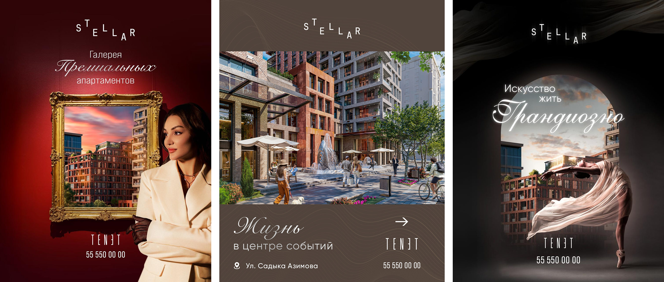 - Креативы: рендеры с астрономической айдентикой, визуализация стиля жизни, планировки